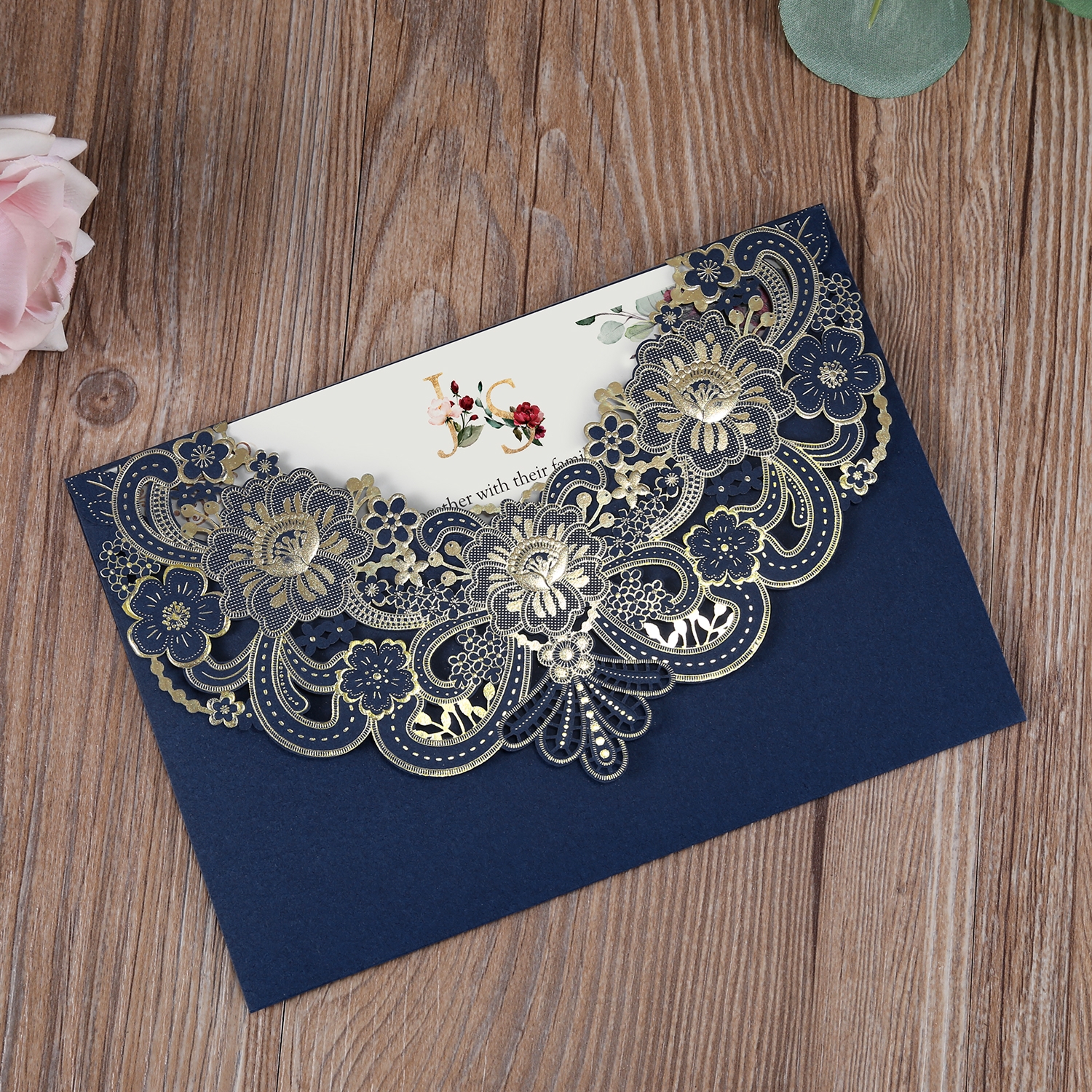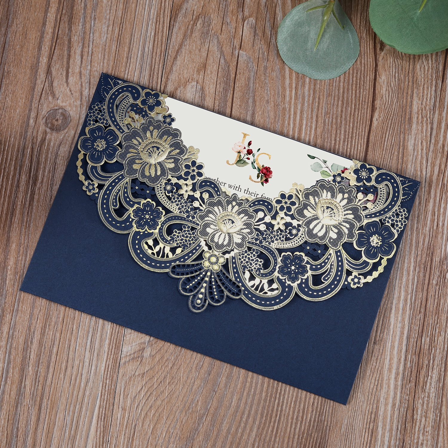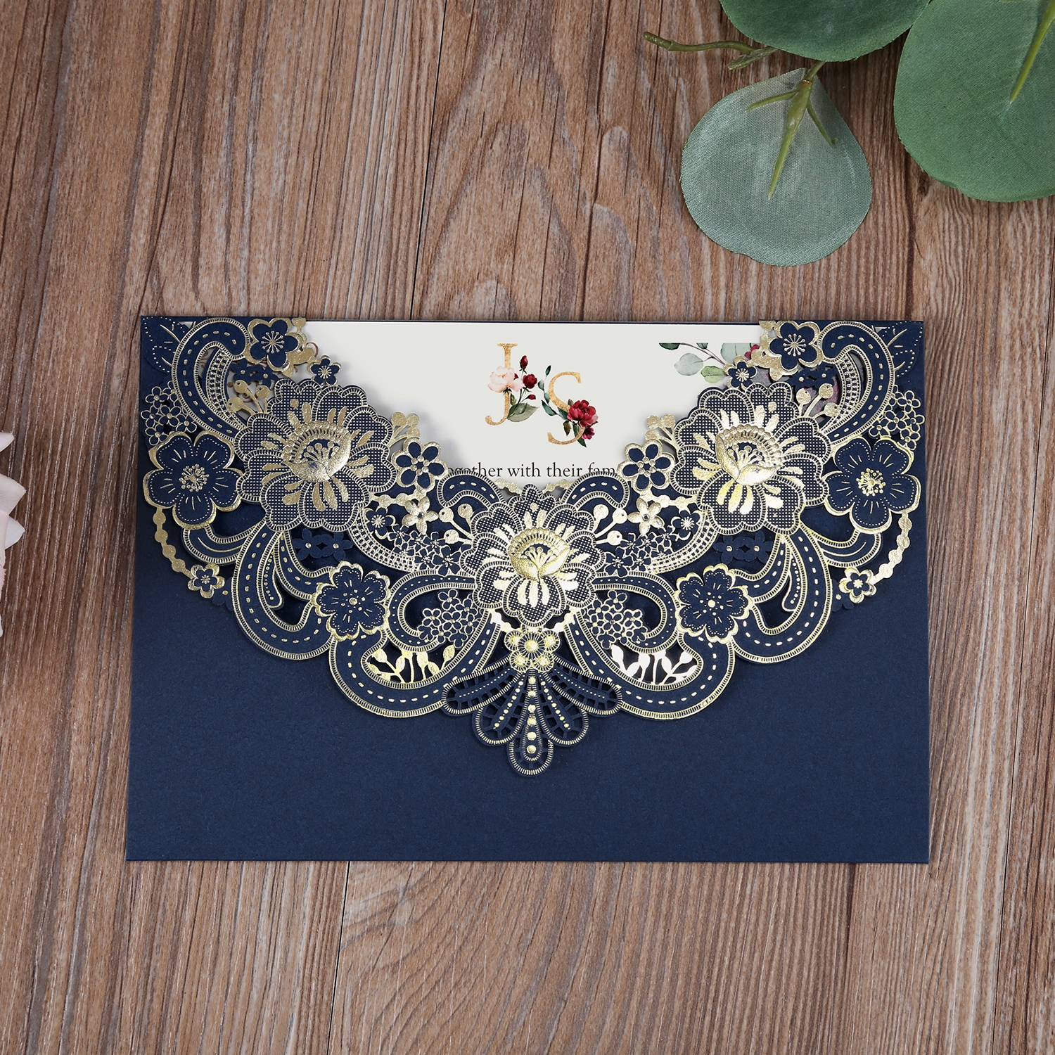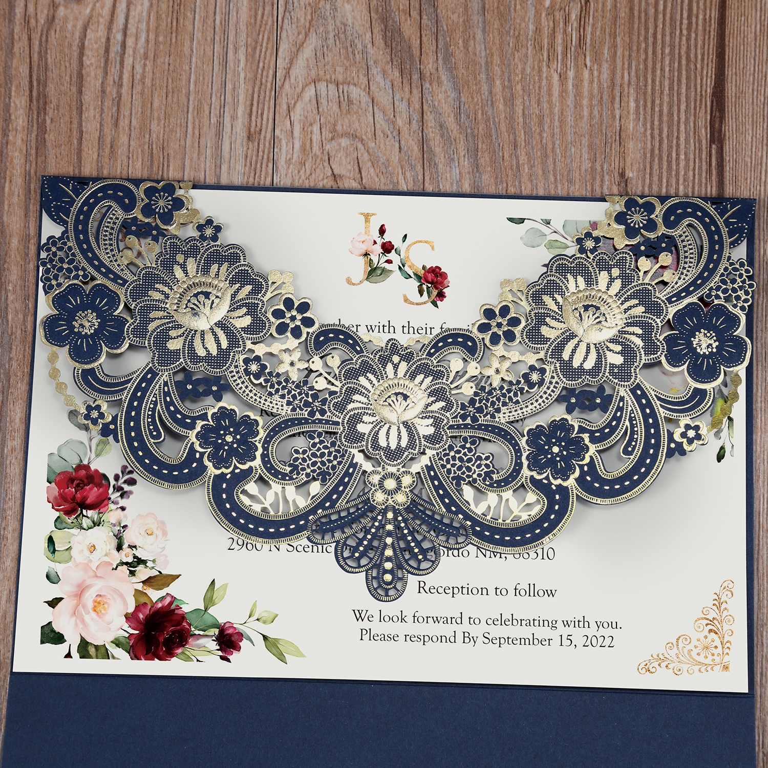 A beautiful lace pattern laser cut to form the necklace of the invitation is very delicate and beguiling. The carved out laser-cut has been carefully done to return an amazingly attractive piece.