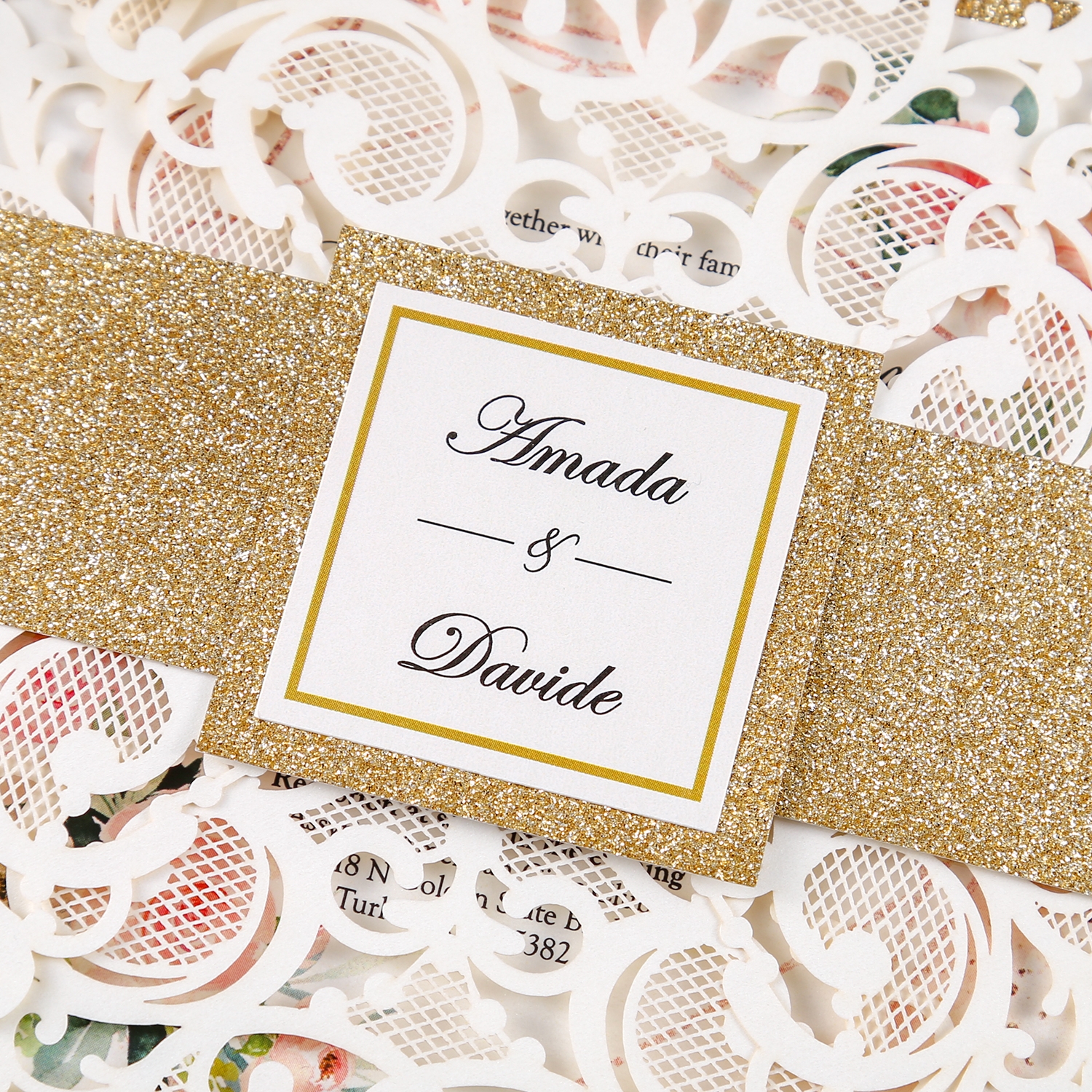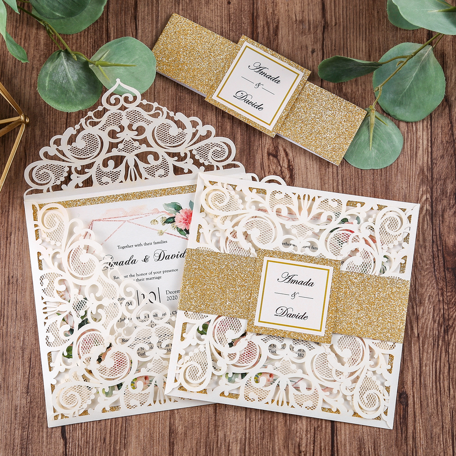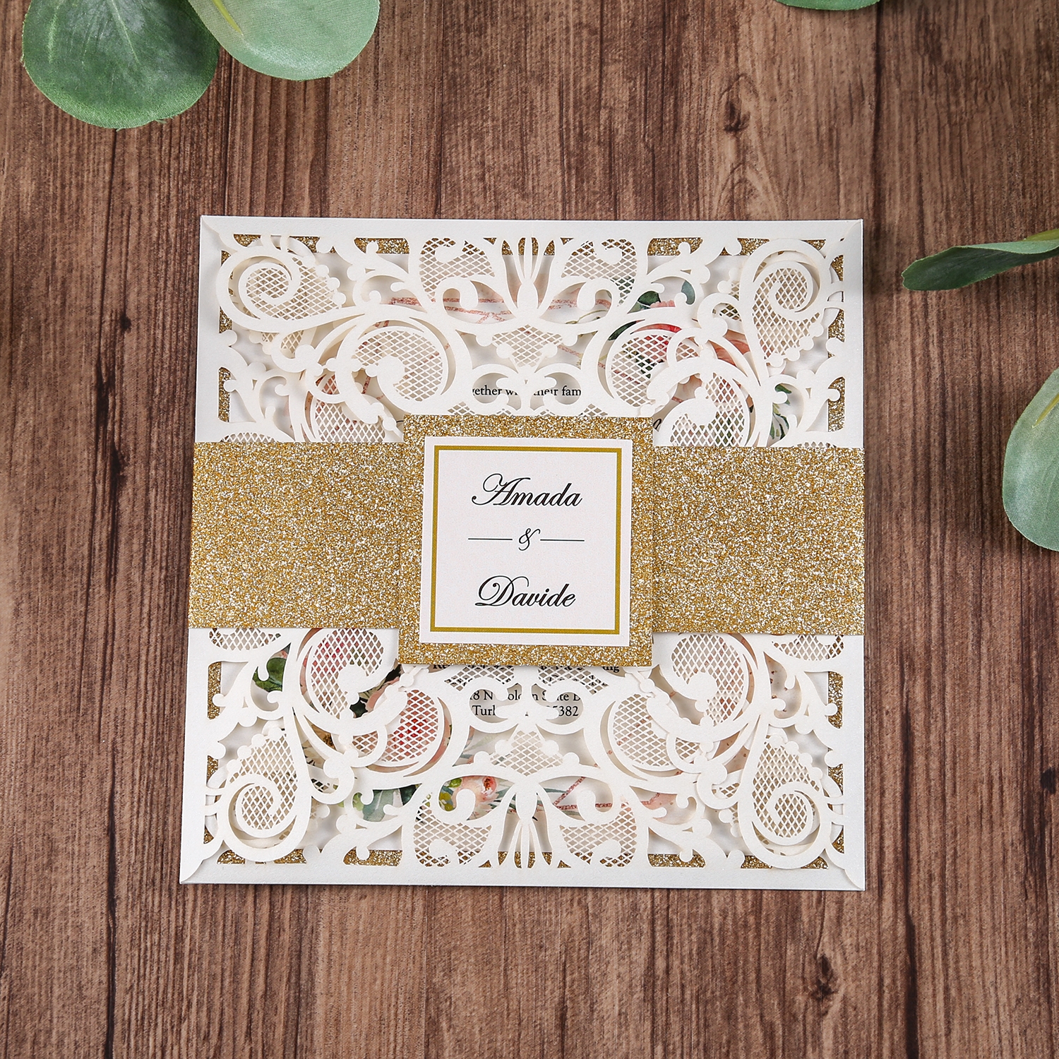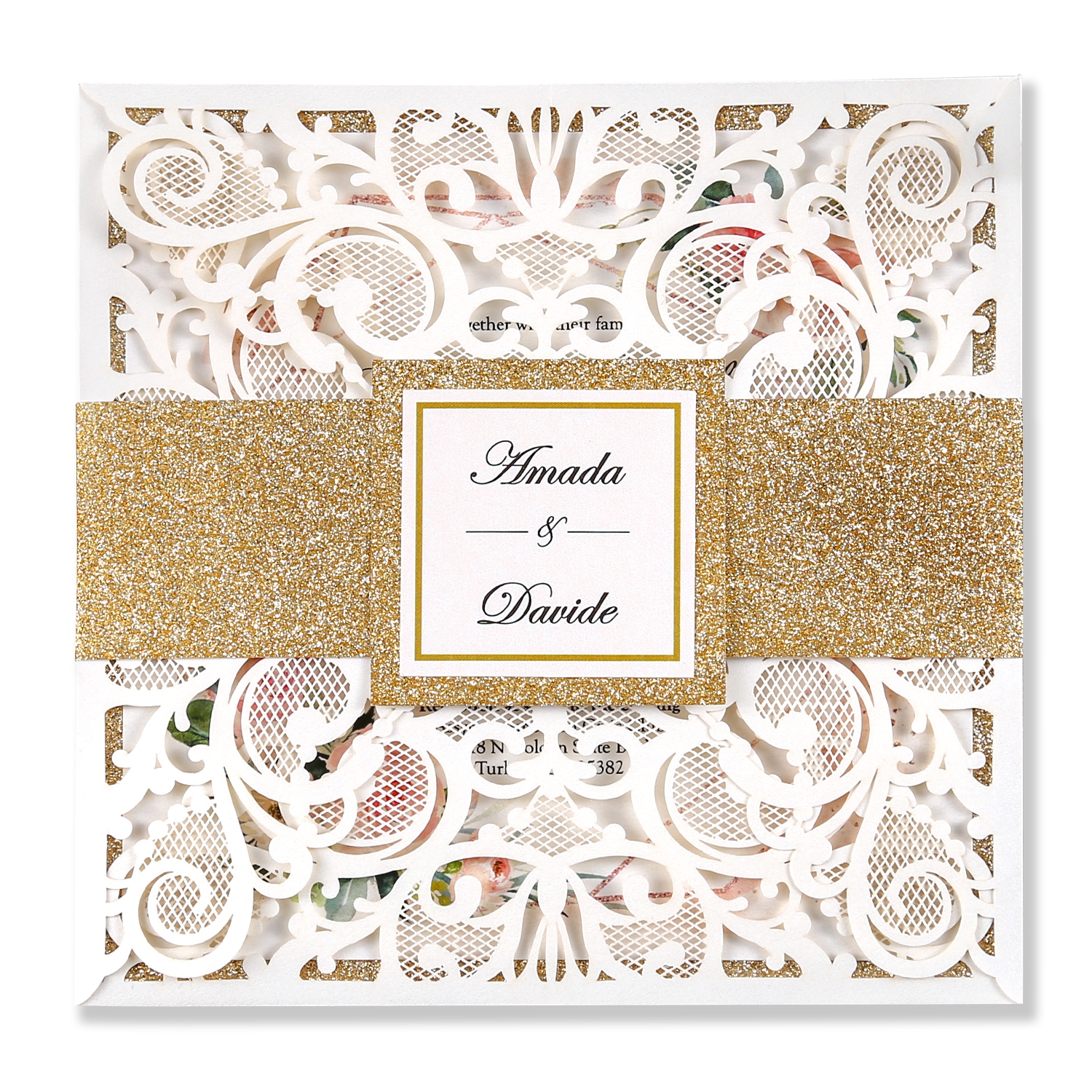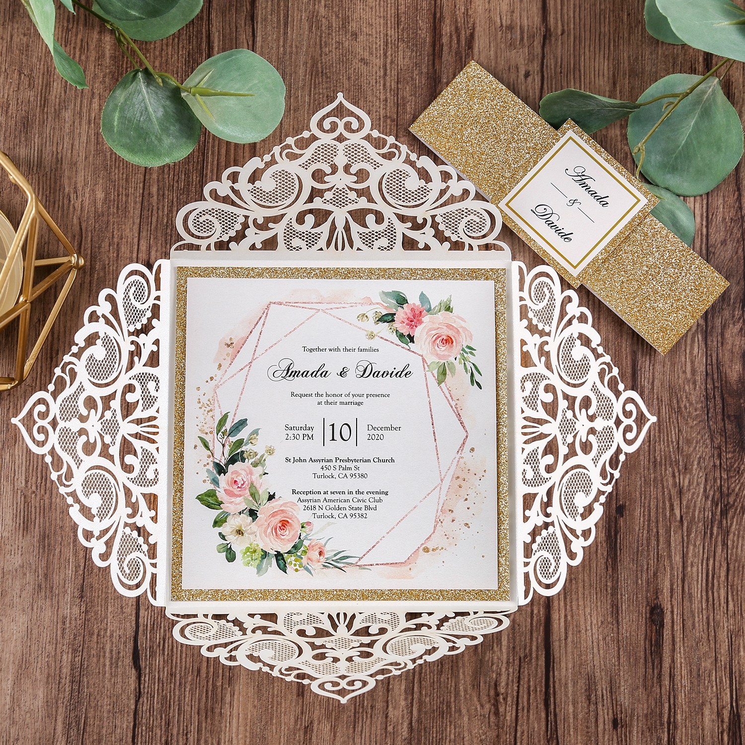 One of the invitation cards that cannot face denial due to its beauty is our Blushing and Shining White laser-cut pocket invitation card.