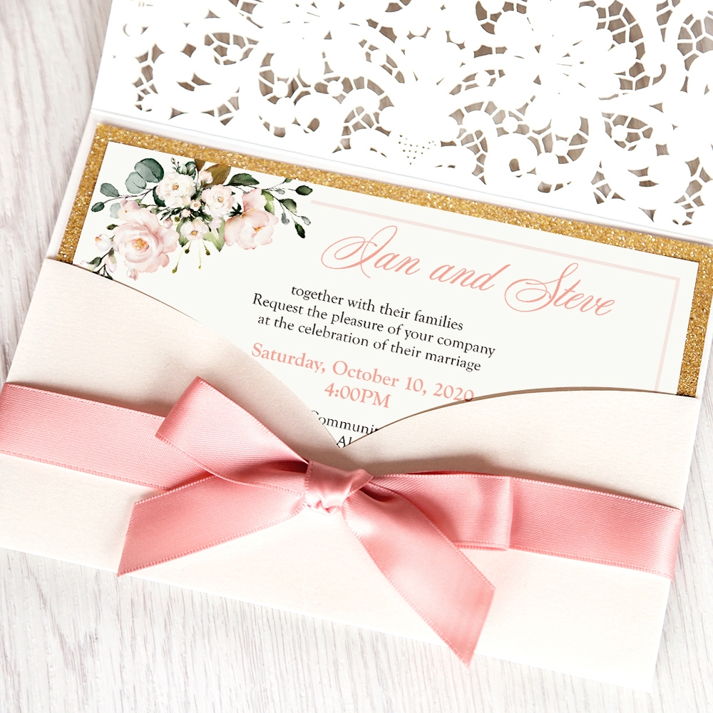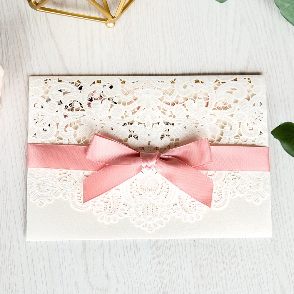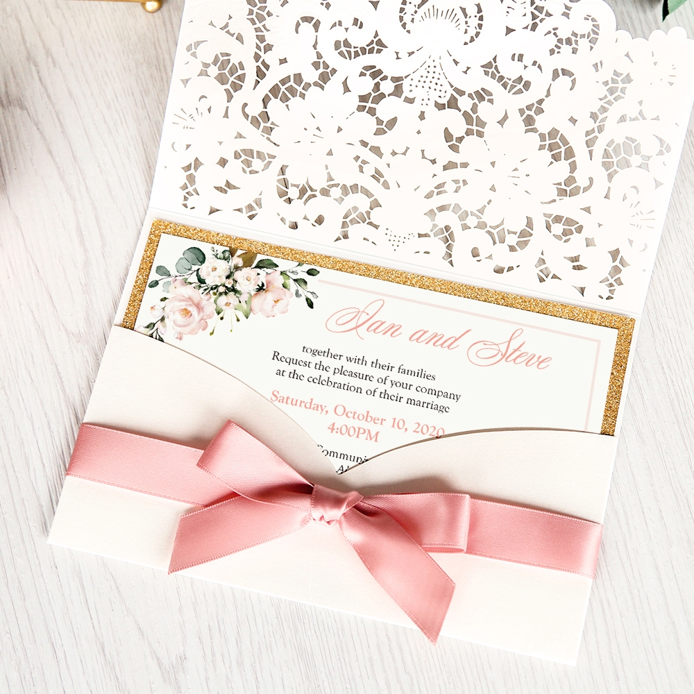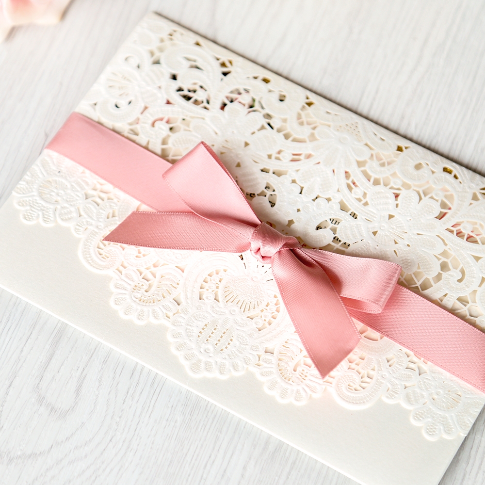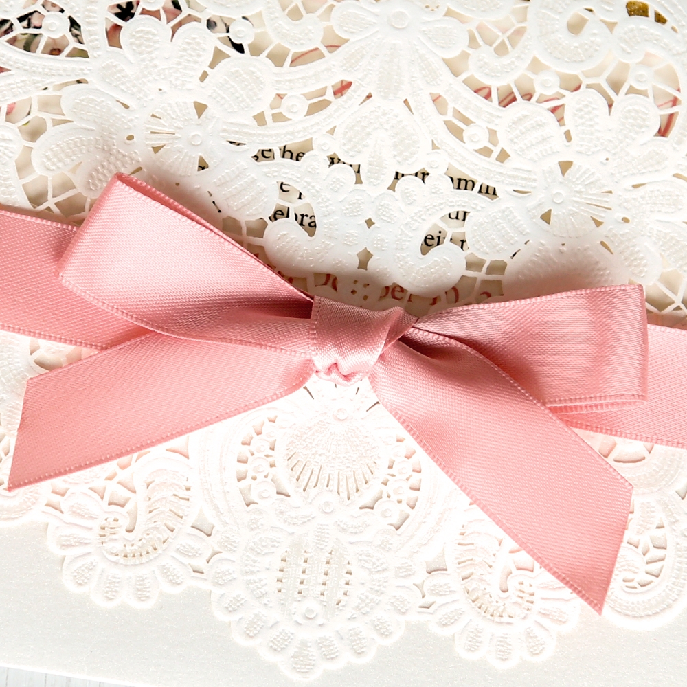 The lace window opens up to find the inner leaves being held within the heart-shaped pocket enabling an easy pull-out. You can customize the content and the number of leaves.