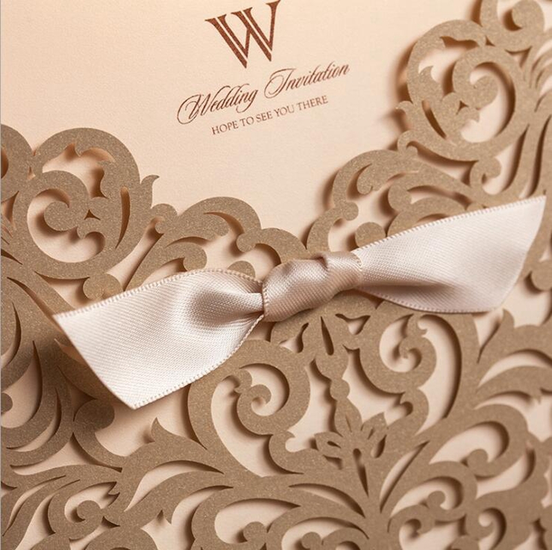 Your hunt for a masterpiece invitation card ends with White and Golden Classic and modern laser-cut pocket card.