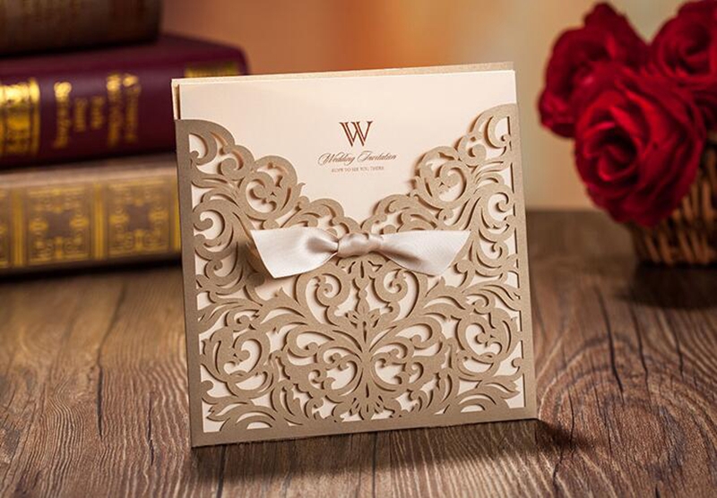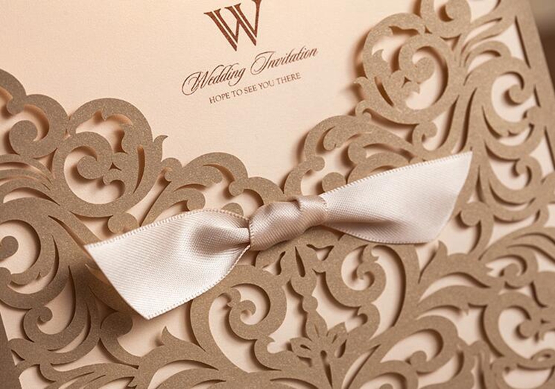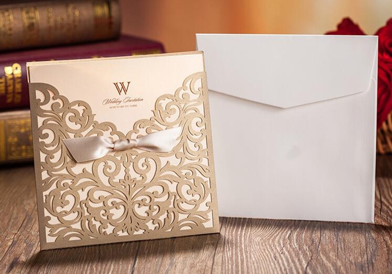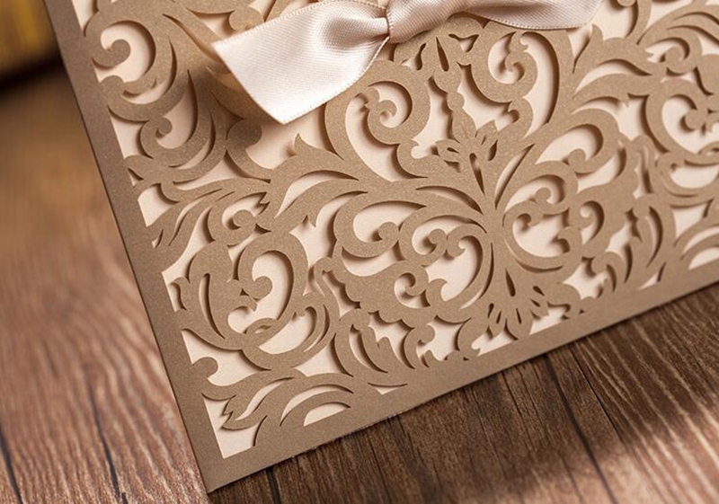 The unique card has the fine royal touch created by the rustic golden laser-cut hollow pocket. The carved-out design is unique and meticulous. The fine finishing of each curve of the carving has been achieved using the latest laser-cut technology.